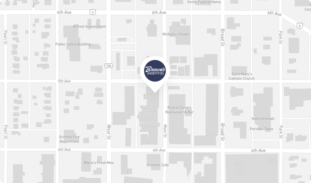 Brown’s Shoe Fit has proudly served the Grinnell area since 1955! We are a full-service shoe store for the entire family. At Brown’s Shoe Fit Grinnell, we take pride in being very knowledgeable and diligent on the sales floor. We strive to provide the best service possible every single day, and our number one goal is to help you find the perfect fit.