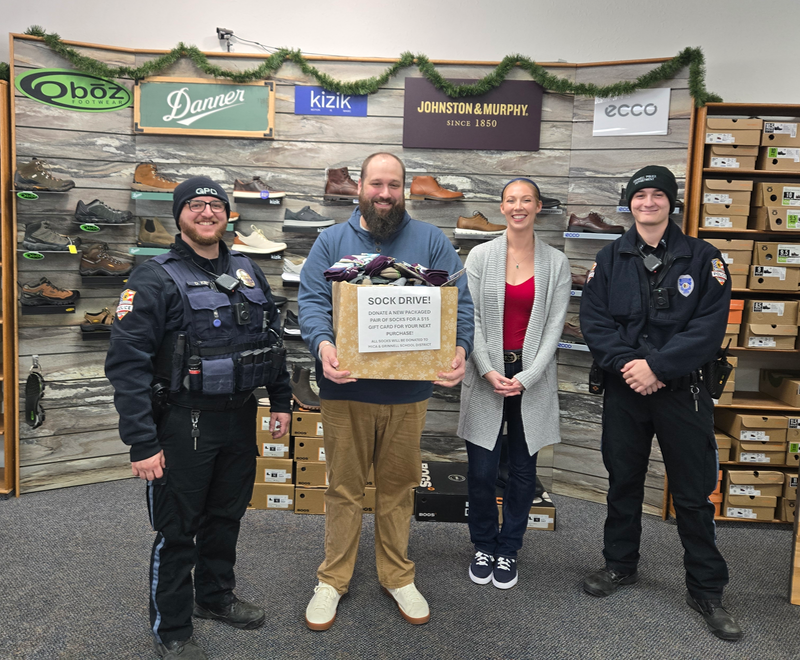 Brown’s Shoe Fit Grinnell is a proud sponsor of Shop with a Cop- a program where the local police department raises money to help kids in lower income homes get Christmas gifts and winter clothing and shoes. The Grinnell Police Department also partnered with us to start a Sock Drive this year, where people bring in a package of new socks to donate and they receive a BSFC gift card. The socks are then donated to MICA (Mid-Iowa Community Action), a local non profit organization, and the Grinnell Newburg School District. We are also proud sponsors of many local clubs and sporting groups, including the Tigers Booster Club.